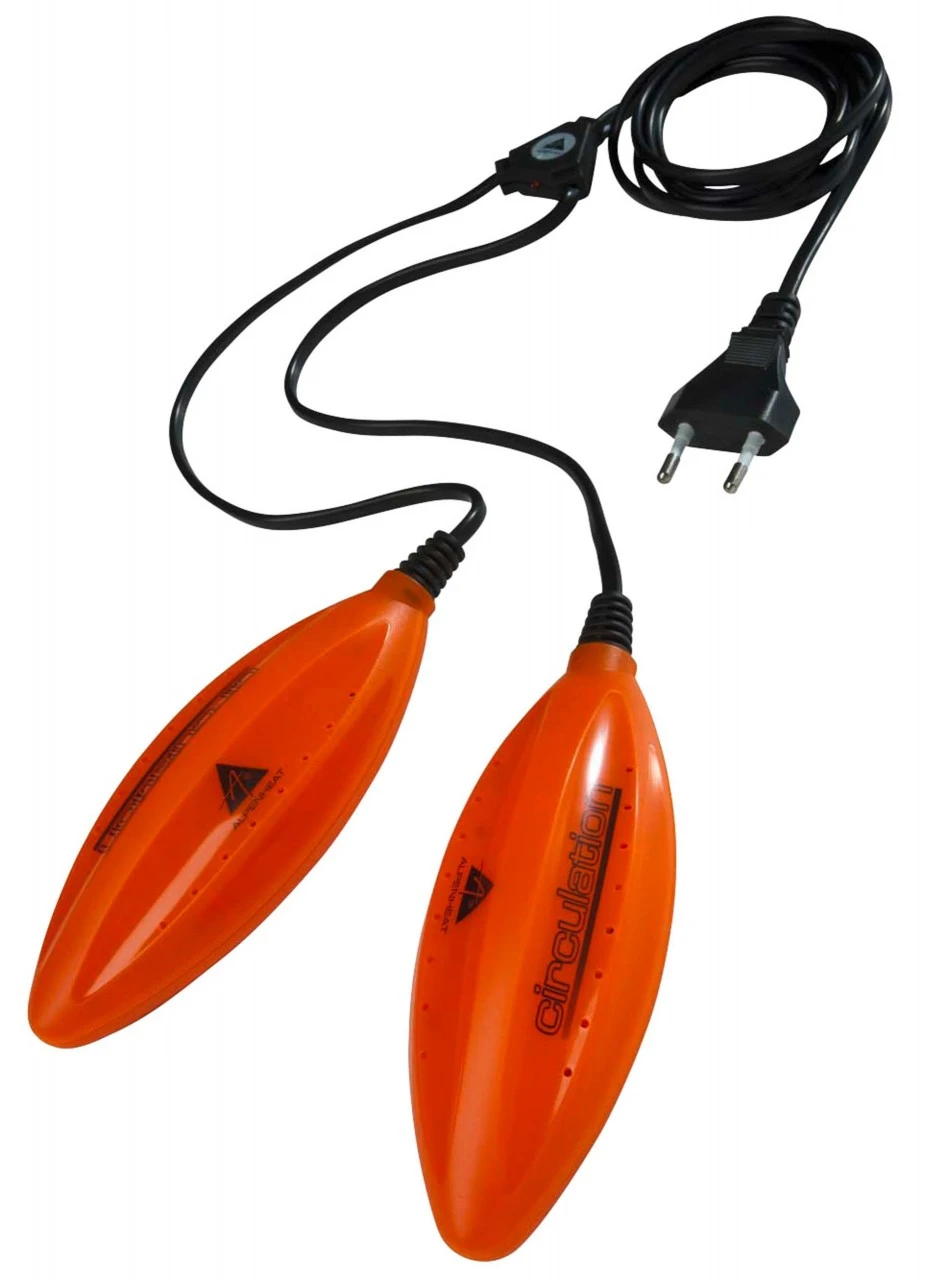 Skotørreren Cirkulation UV tørrer, varmer og fjerner ubehagelige lugte. Det indbyggede UV-lys bekæmper bakterier. Cirkulation UV er en mobil tørrer, der skaber luftcirkulation ved konvektion. Skotørreren er også ideel til forvarmning af kolde sko. Afstandsstykker på undersiden løfter tørretumbleren op fra gulvet og sikrer uhindret luftcirkulation. Luftåbningerne i Cirkulation UV forkorter tørretiden. Den kolde luft suges ind gennem bundens åbninger i Cirkulation UV, varmes op og strømmer ud igen med øget tryk gennem toppens åbninger. Effekt 9 W. Mål 5 x 3,8 x 15 cm. Vægt 220 g.