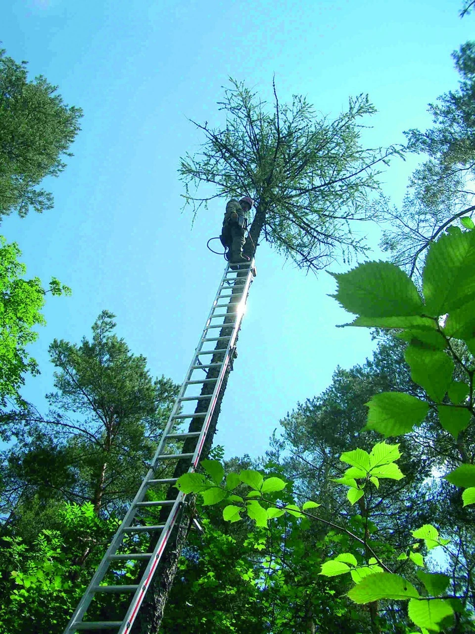 Til store højder – op til 20 m. Som standard anvendes et basissegment på 420 cm, nr. 71-150-01, og 3 påsætningssegmenter på 340 cm, nr. 71-151-01. Stigen kan dog også udvides til mere end 20 m med yderligere plug-in-segmenter. Hver stigesektion har en påskruet understøtning, nr. 71-178-01, som indsættes og fastgøres i det øverste trin på stigesektionen.