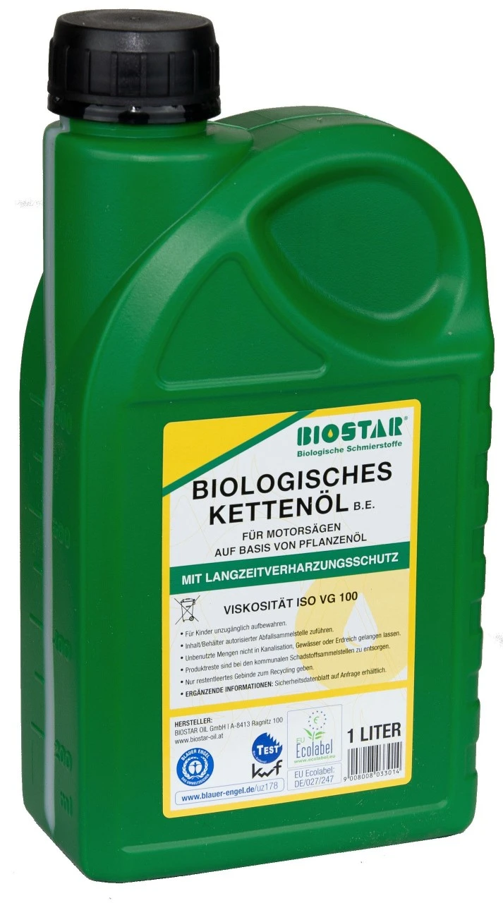En plantebaseret kædeolie til motorsave på basis af rapsolie.