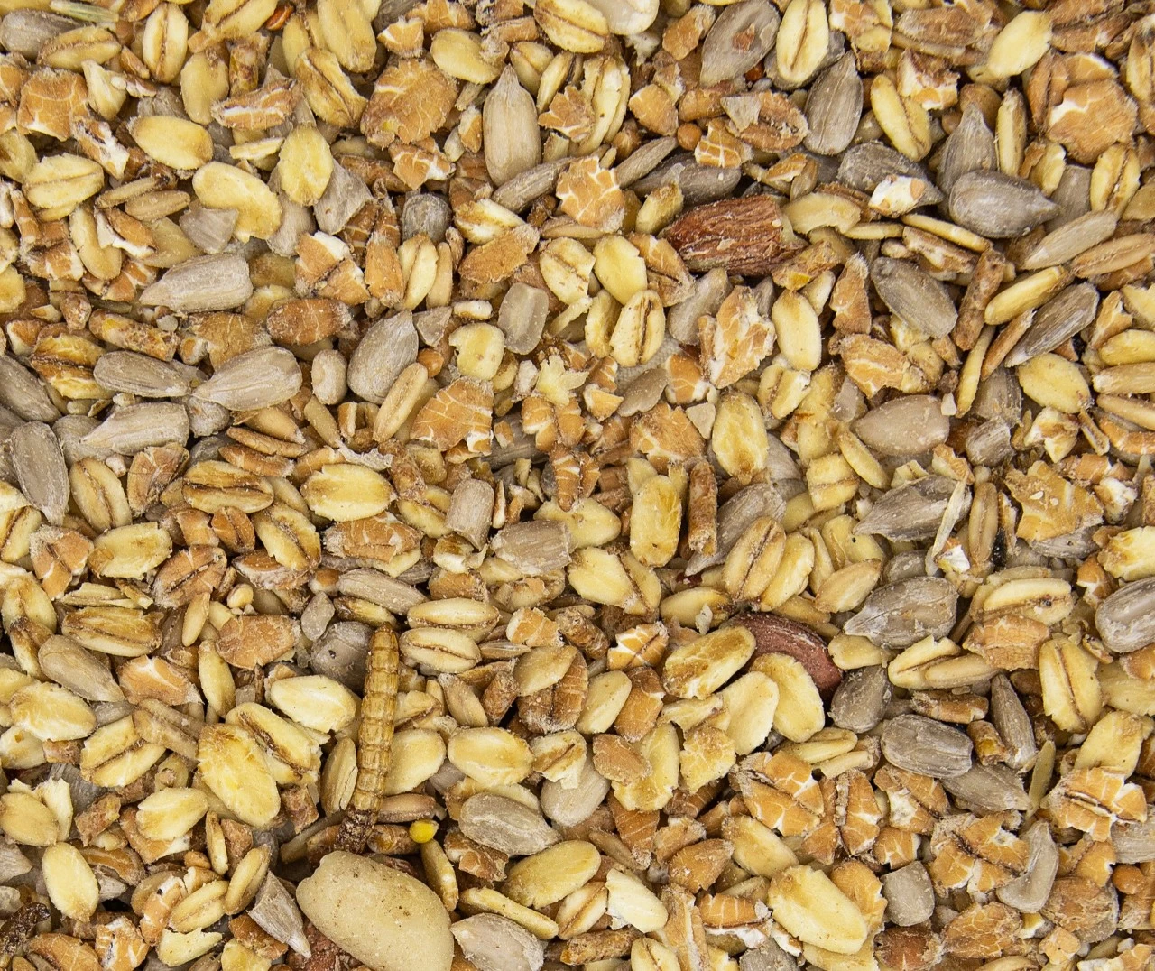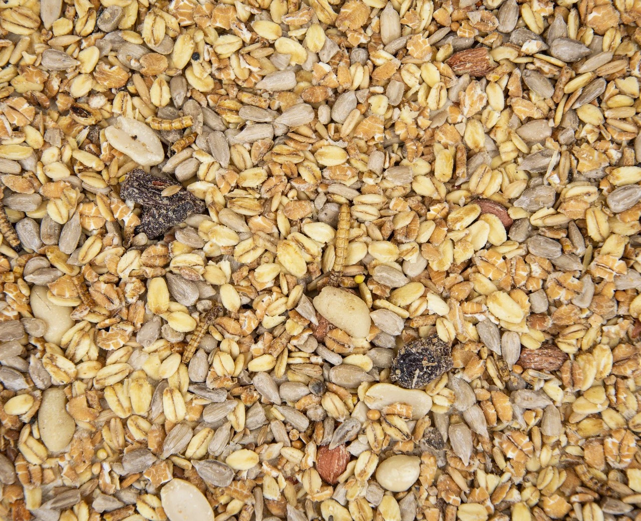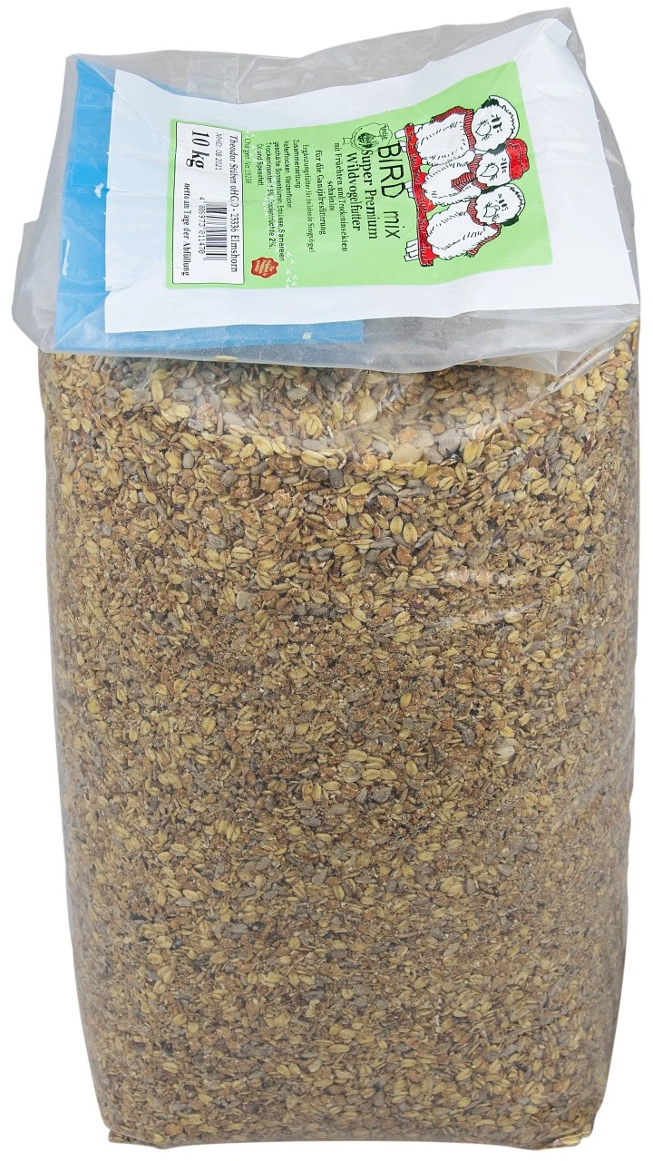 Helårsfoder og desuden et ideelt fodertilskud om foråret til ynglende fugle. Dette foder spises gerne hele året. Ved for koldt vejr i yngleperioden og dermed en lav forekomst af insekter falder succesraten for ynglen. Med Birdmix overvindes mangel på næring bedre og succesraten for yngel stiger. Artstilpasset – værdifuld – vitaminrig – skalfri. Består af kornflager, tørrede insekter, diverse frø, afskallede solsikkekerner, nødder, tørret frugt, bagte, stivelsesholdige foderbestanddele samt animalsk og vegetabilsk fedt.
