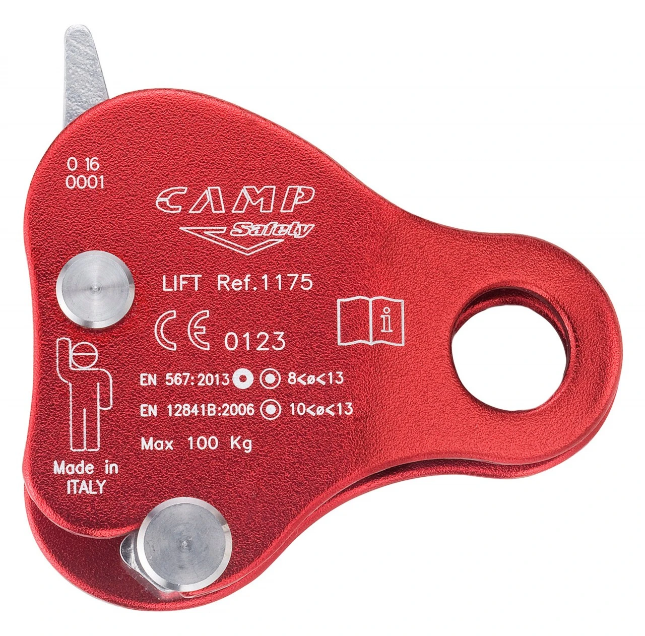 Kompakt og let til påsætning på reb fra 8 – 13 mm Ø. Løber let med , ↔76 mm ↕ 75 mm, vægt 95 g.