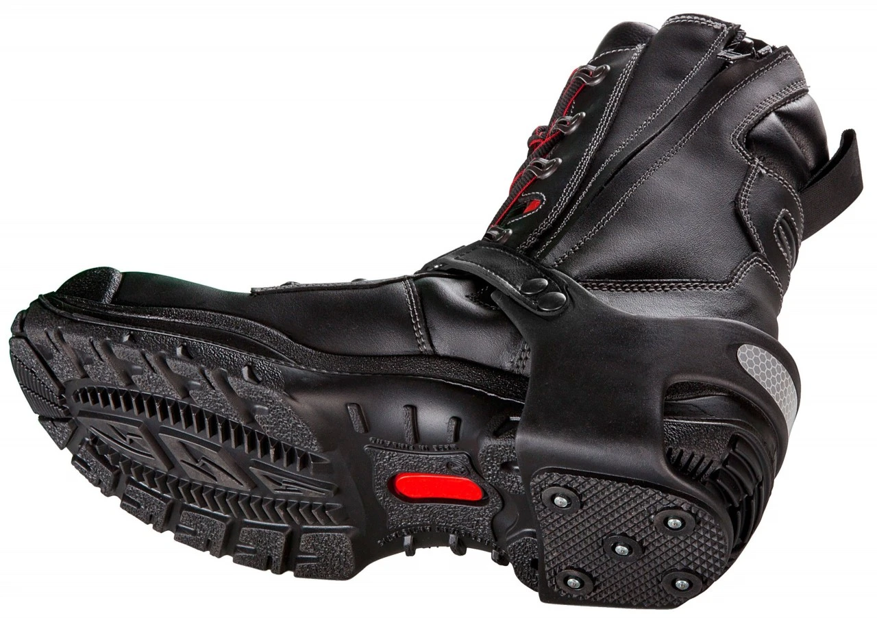 Lette at montere på sko/støvle, med velcro-bånd. holdbar og modstandsdygtig ved ekstrem kulde. Robust konstruktion med hærdede metalpigge, samt refleks. Passer til næsten alle sko/støvler.