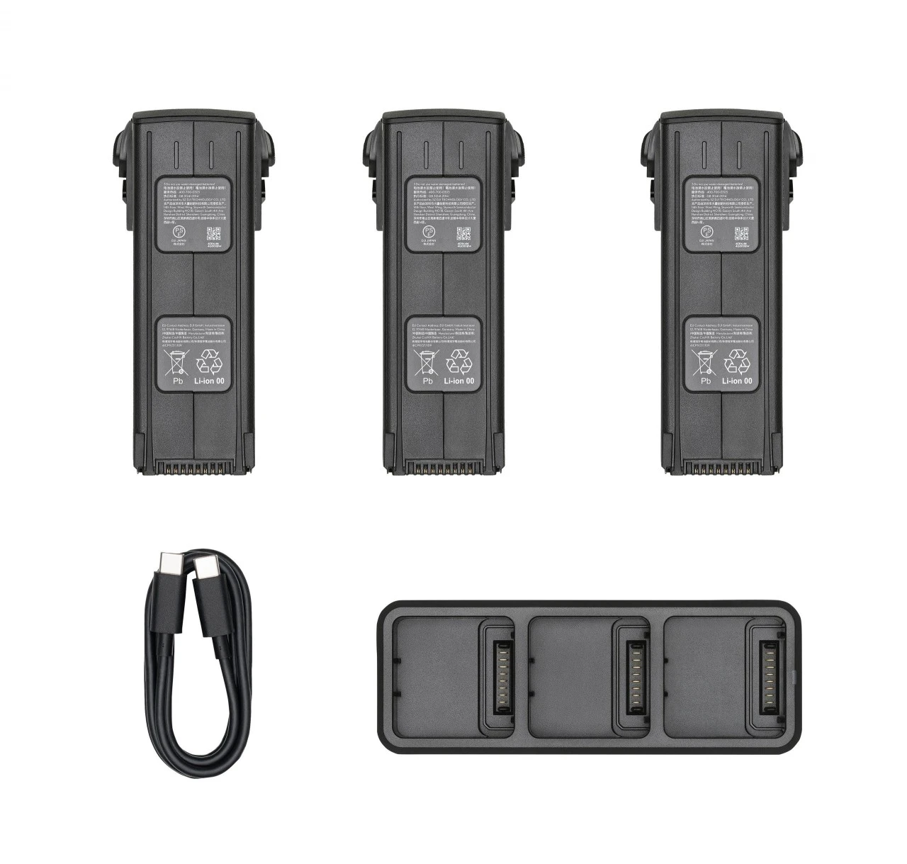 DJI batterisættet er kompatibelt med DJI dronerne Mavic 3 Enterprise (Nr. 85-918) og Mavic 3 Thermal (nr. 85-919). Det indeholder 3 intelligente flybatterier og en passende ladestation (100 W). Hukommelse per batteri 5000 mAh. Vægt per batteri 335,5 g. Mål ladestation 150 x 55 x 28 mm (L x B x H). Vægt ladestation 116 g.