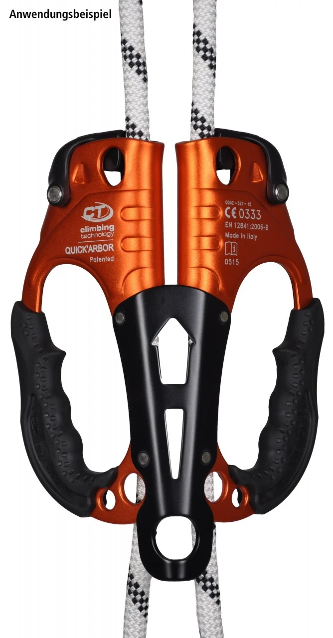 Den dobbelte rebklemme Quick Arbor er udviklet specielt til arborister og til opstigning med dobbeltreb. I forbindelse med en fodklemme er den særligt kraftbesparende. Stort ergonomisk formet håndtag. Håndterbar selv på til isede og meget tilsmudsede reb, via den tandede rebklemme og renholdelsesslids. Egnet til reb fra 10 til 13 mm. Vægt 505 g