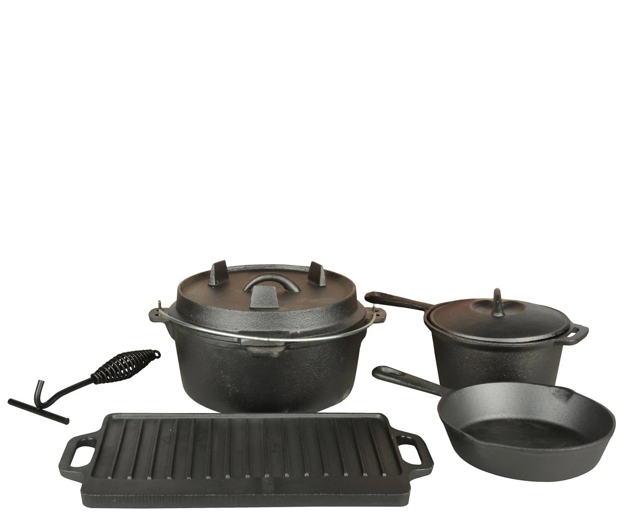 Dutch Oven-sættet, FF 240, er det perfekte valg for alle, der elsker det velsmagende udekøkken. Med den, kan du nyde at tilberede dine måltider i det fri i en hyggelig atmosfære, hvor du eller i kan glæde jer over resultatet sammen. Ud over den alsidige, hollandske ovn i støbejern, indeholder dette sæt også flere andre redskaber, som man altid bør have med sig, når man laver mad med god stil over en åben ild. Hollandsk ovn-sættet FF 240 består af: