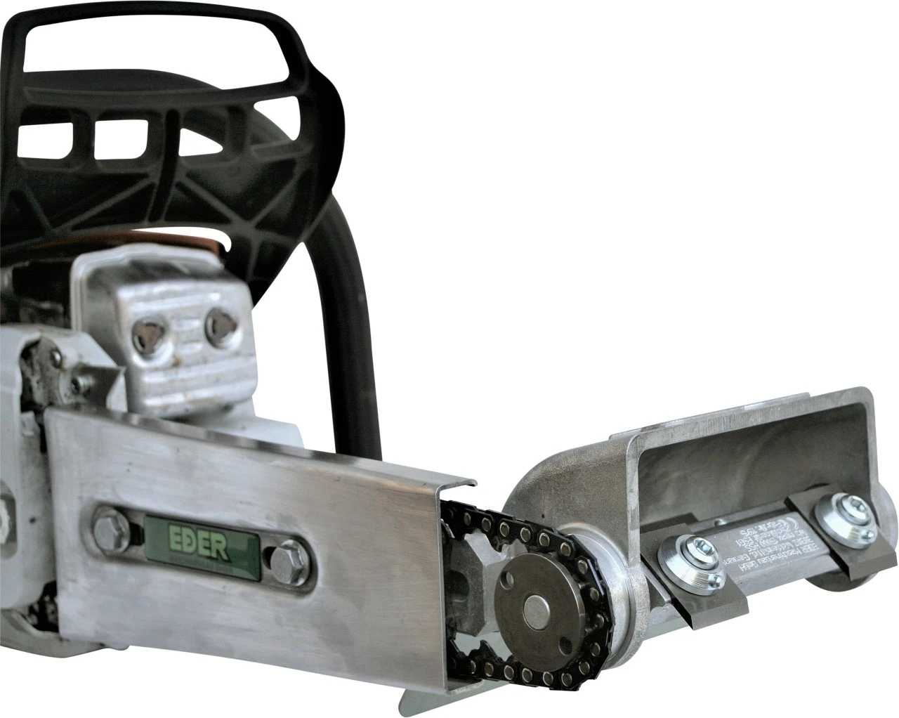Eder afbarker-monteringshoved til kædetræk anvendes til afbarkning af stammer af enhver tykkelse. Den monterede afbarkningsvalse sørger for stor spåntagning ved anvendelse af minimal kraft. De fire afbarkningsknives afstand fra stammen fastholdes automatisk og uafhængigt af barktykkelsen i hele træstammens længde ved hjælp af hårdmetalstifter, der er anbragt bag kniven. Det kan særligt anbefales af bruge afbarker-monteringshovedet til kædedrev ved tyk og hård bark økonomisk og til park- og kommunalområdet.