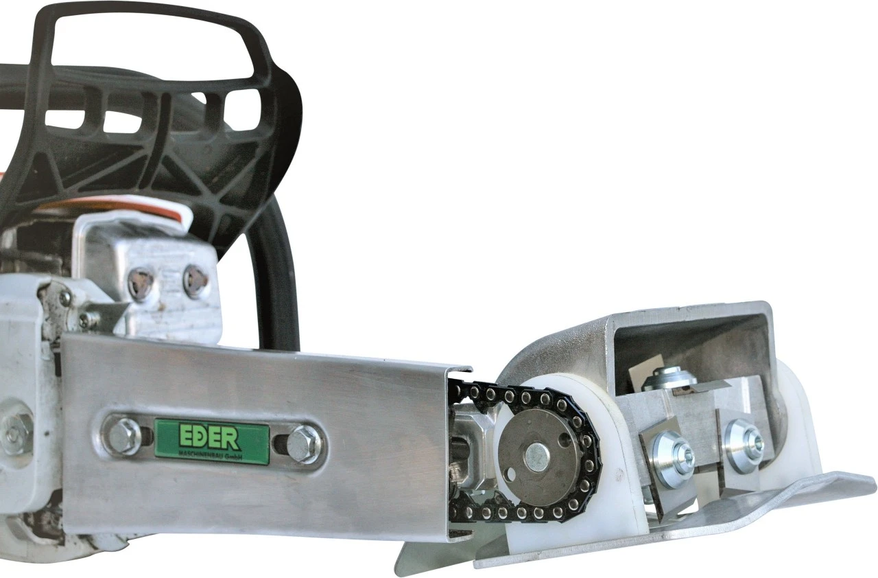 Eder rundhøvl-monteringshovedet med kædetræk egner sig til høvling af runde træoverflader af enhver type. Afbarkningsvalsens strukturelle design sikrer en høj skæreydelse med minimal indsats. Knivene kan indstilles trinløst, så du kan indstille dybde og radius af snittet med den ønskede spåntykkelse. Takket være pendulophænget tilpasser enheden sig også til krumt træ. Ved korrekt indstilling af knivene opnås en glat overflade.