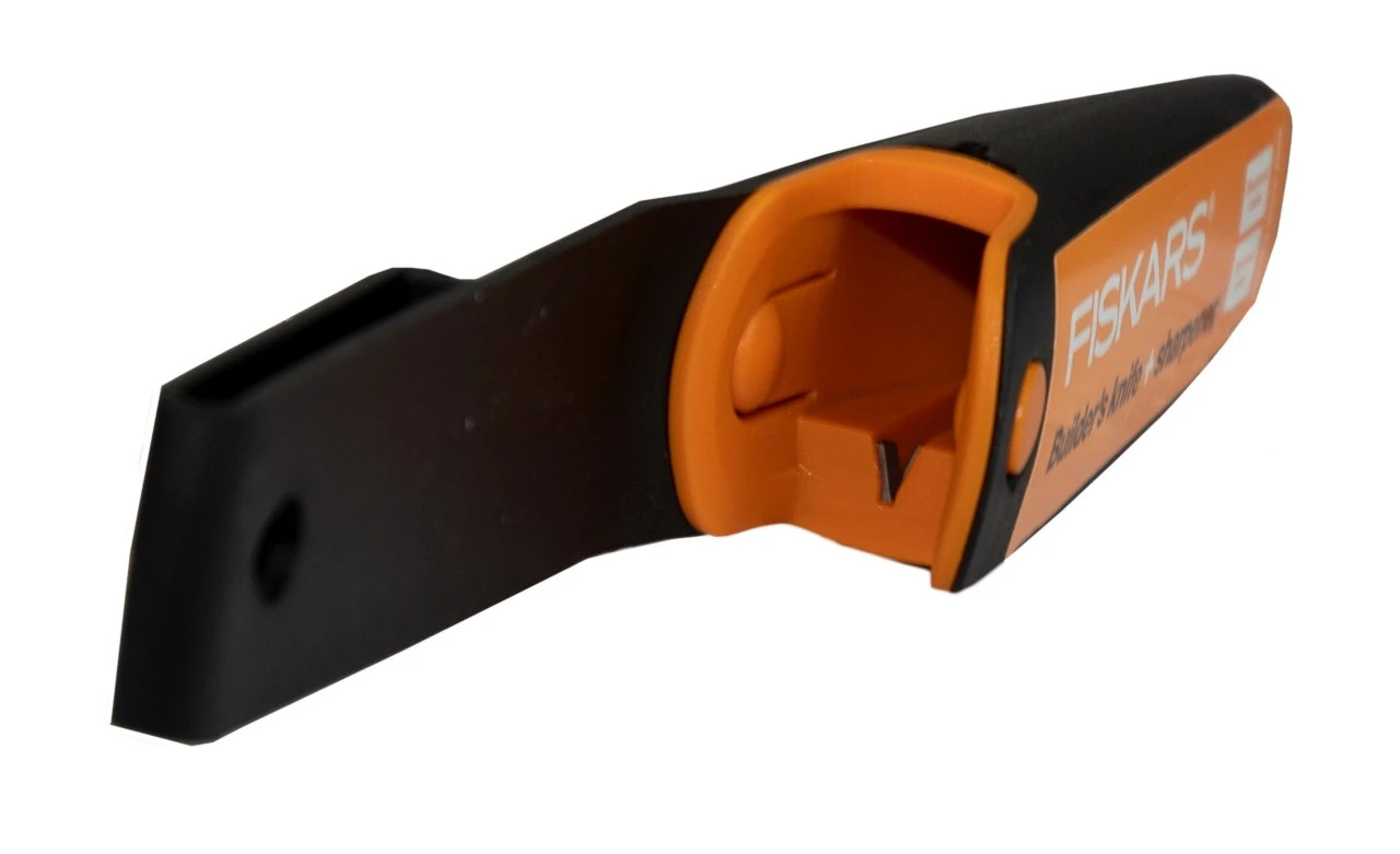 Fiskars Pro knivserien er fremstillet af rustfrit stål. SoftGrip står for bedste greb. I den medfølgende plastiktaske findes en integreret knivsliber. Tasken kan indstilles fra venstre til højre.