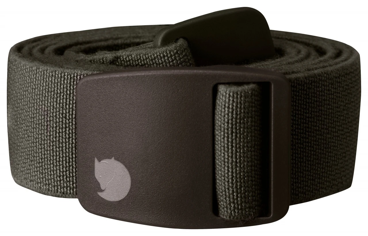 Elastisk tekstilbælte med robust, let justerbart spænde i plast med logoprint. Spændets ekstra flade kontur er designet, så det ikke trykker under rygsækkens hoftebælte. Kan justeres i vidden. Bredde 4 cm. Farve: dark olive. Længde ca. 120 cm.