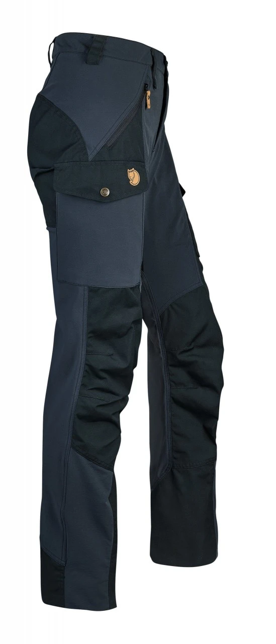 Områderne ved ryggen, bækkenet og lårene på Fjällrävens damebukser, Nikka Curved, er designet lidt mere generøst. Taljen er høj ligesom linningen er højere bagpå. Dermed sidder bukserne altid perfekt, uanset om du bærer en rygsæk eller udøver andre krævende aktiviteter. Det høje komfortniveau forbedres yderligere af det forformede bag- og knæområde. Hofte- og rygområdet er lavet af stretchmateriale, som sikrer optimal bevægelsesfrihed. Robuste forstærkninger af G-1000 Original på de særligt udsatte områder, som fx bag, knæ og ankler. Stiklommerne med lynlås er altid let tilgængelige, selv når du bærer en rygsæk med et hoftebælte. Til højre er der en stor benlomme med en klap og knap, en mindre inderlomme i mesh med klap og knap samt en mindre benlomme til mobiltelefon eller GPS-enheden i venstre side. Benlængden kan forkortes individuelt.