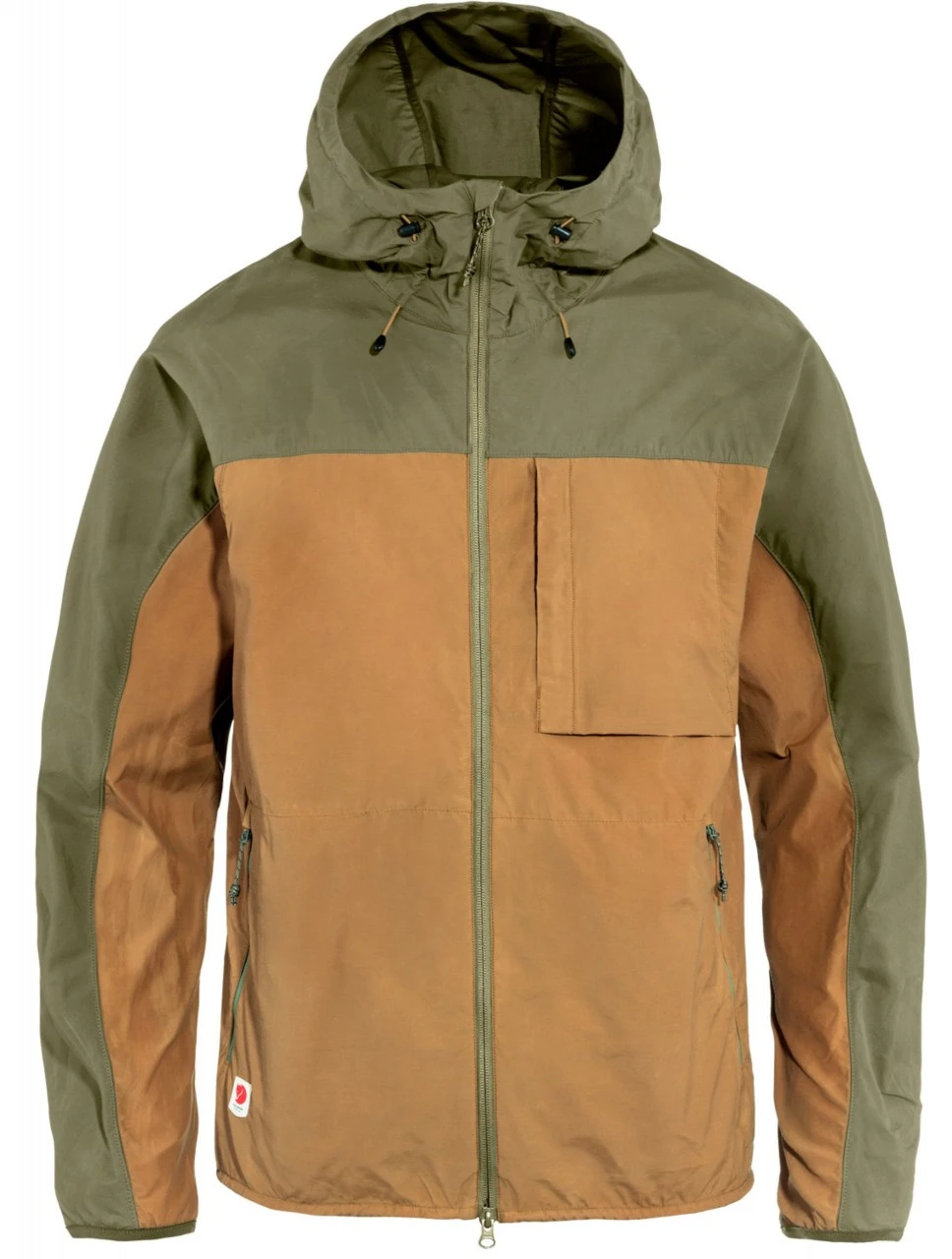 Fjällräven jakken High Coast Wind er forsynet med to sidelommer med meshfor og en lodret brystlomme, alle med lynlås.