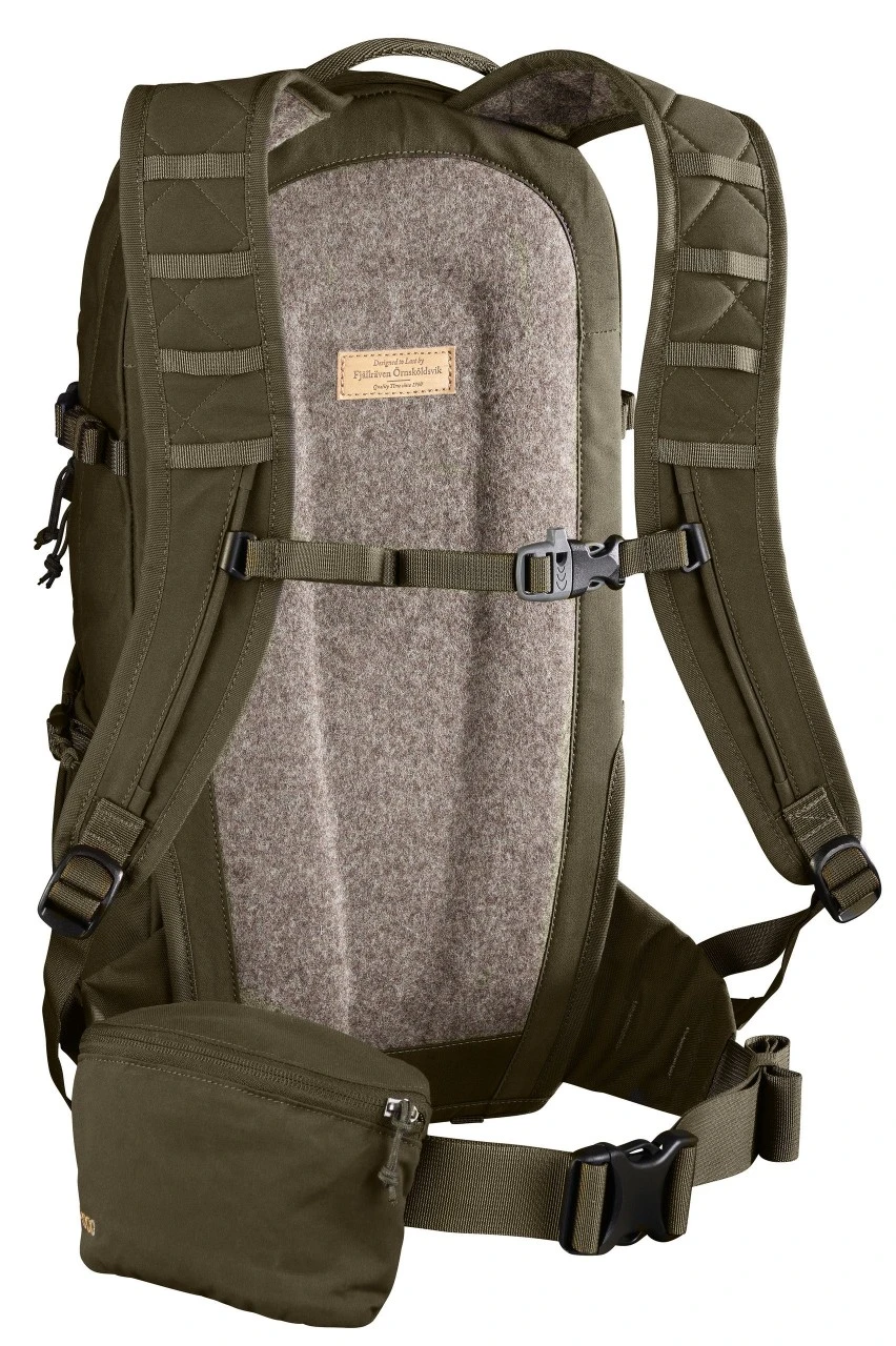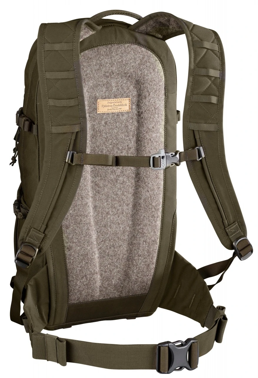 Rygsækken er lavet af ekstremt robust G-1000 HeavyDuty Eco S med vandtæt bund og en ekstra slank, kropstilpasset form. Den har en unik ryg lavet af hårdt sammenpresset uld. Det gør den åndbar og stabil samt utroligt behagelig at have på. Det komfortable og ergonomiske bæresystem er lavet med justerbare remme. Bæreremmen og ryggen er foret med blød, slidstærk og åndbar loden.