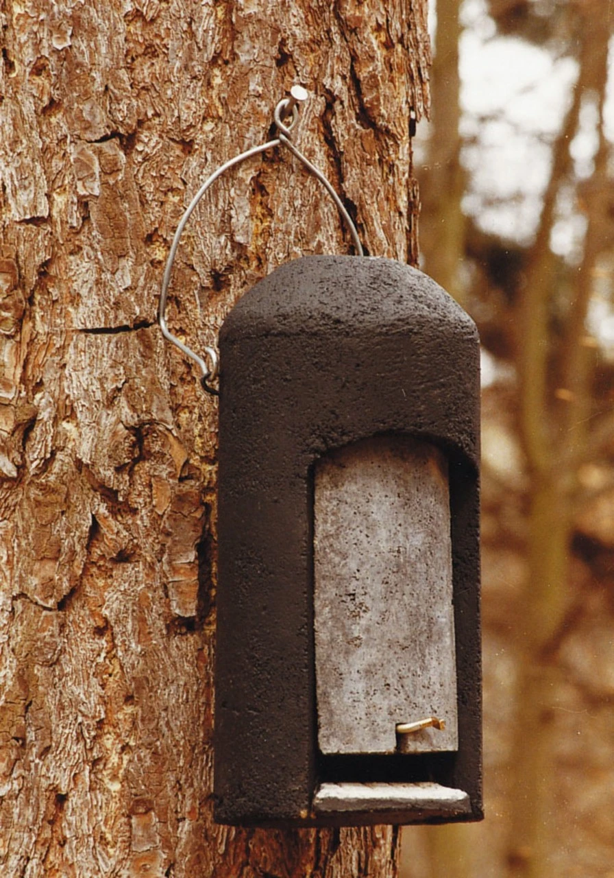 Denne kasse er specielt til flagermus, og forvæggen kan ikke udskiftes som på F2. Den er bygget og afprøvet i forhold til de nyeste resultater. Kassen giver højeste sikkerhed mod rovdyr, træk og lys. Foring: naturtekstilfibre. Højde 36 cm, vægt 4,9 kg.