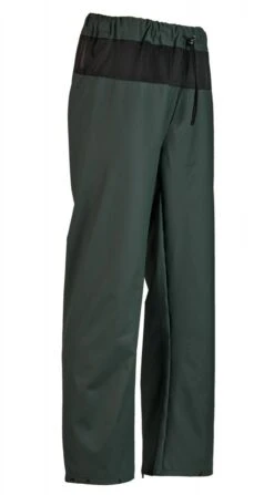 Flexorain-buks til vådt vejr med mekanisk ventilation. Nettet, der er indsat i linningen, giver luften mulighed for at cirkulere. Et generøst snit, en blød, elastisk linning med løbebånd med fastgørelse og lynlås i benenden, der øger komforten og gør dem lettere at tage på.
