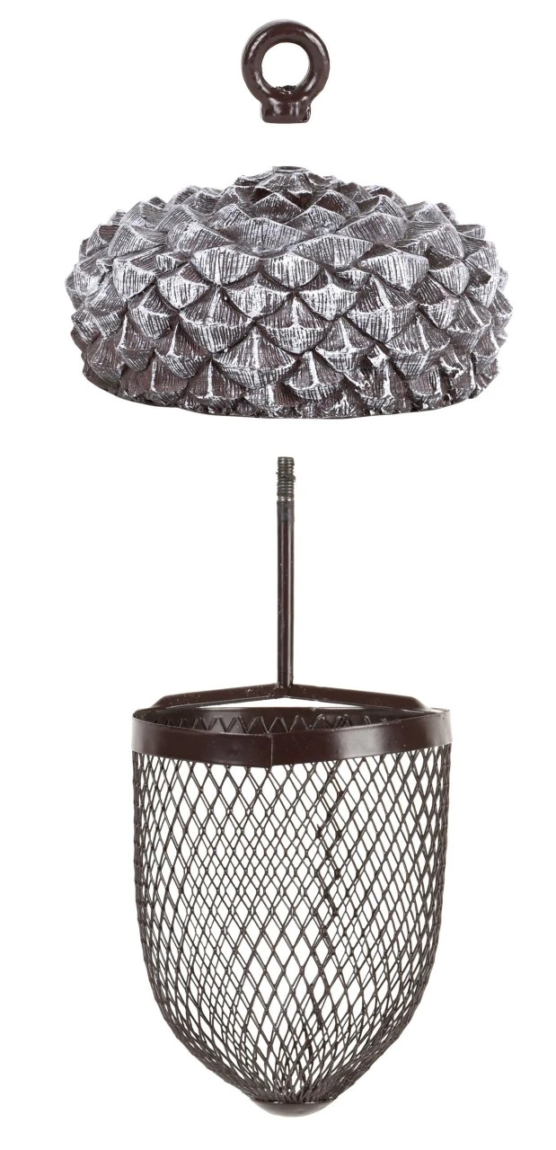 Med foderstedet i agernform, der kan nås fra alle sider, gør du livet nemt for fuglene. Fuglefoderdispenseren er let at hænge op og kan fyldes med det ønskede foder, f.eks. med nødder. For at gøre dette skal du blot skrue agernlåget af. Materiale PVC. Mål 14 x 14 x 22,2 cm. Vægt 266 g.
