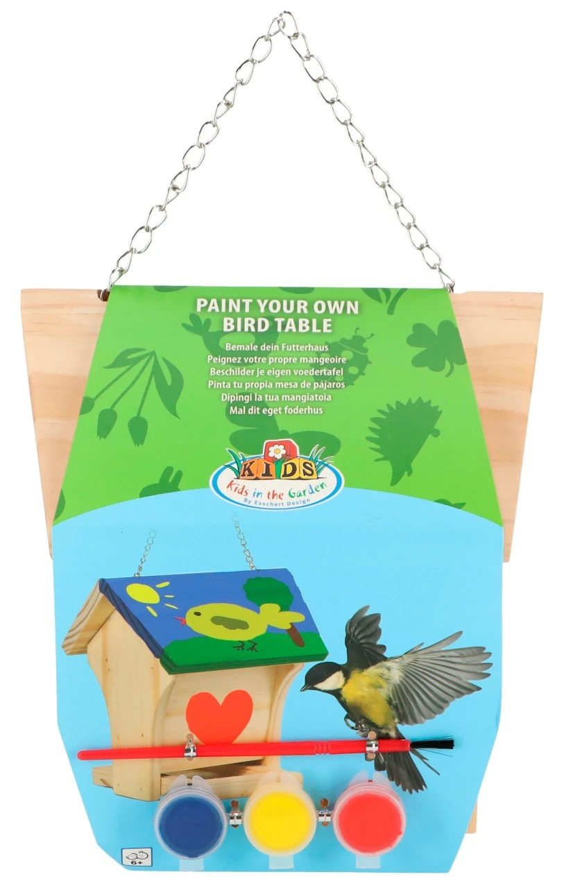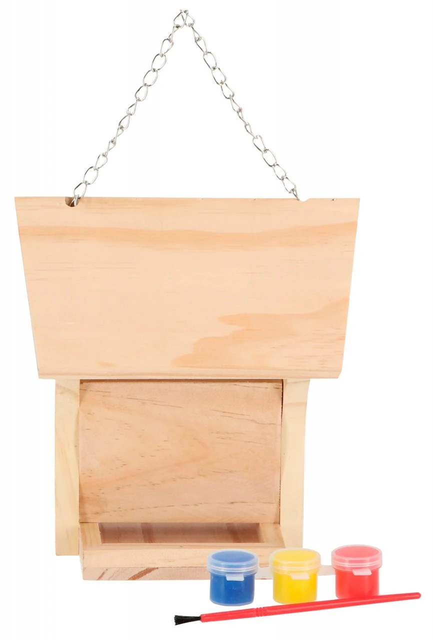 Med gør det selv-foderhuset kan du og de små virkelig udfolde jer kreativt. Du skal blot bruge penslen og de tre forskellige farver, og så er du i gang! Foderhuset er velegnet til alle hjemlige fugle og kan derefter fyldes direkte med foder og hænges op i haven.