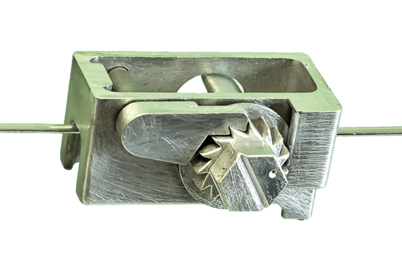 Til alle gængse tråde og tykkelser. Ukompliceret efterspænding af spændetråde uden brud på tråden. Hus og drejekrans sættes ganske enkelt på, og tråden spændes med en skruenøgle eller skralde. Fremstillet af trykstøbt zink, rustfrit. Vægt 180 g