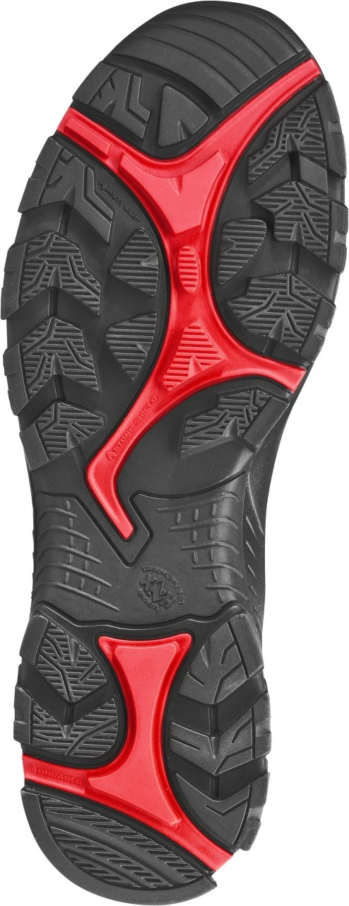 S3-sikkerhedsskoene er elektrostatisk spredende. Dette betyder, at skoene opfylder kravene i ESD-standarden DIN EN 61340-4-3: 2002. Sålen er olie- og benzinbestandig. Derudover er sålens gummimateriale ikke mærkning. Sikkerhedsskoene efterlader ikke grimme striber på gulvet, heller ikke indendørs. Samlet set opfylder BLACK EAGLE SAFETY 54 LOW de højeste standarder for din personlige sikkerhed på arbejdspladsen.