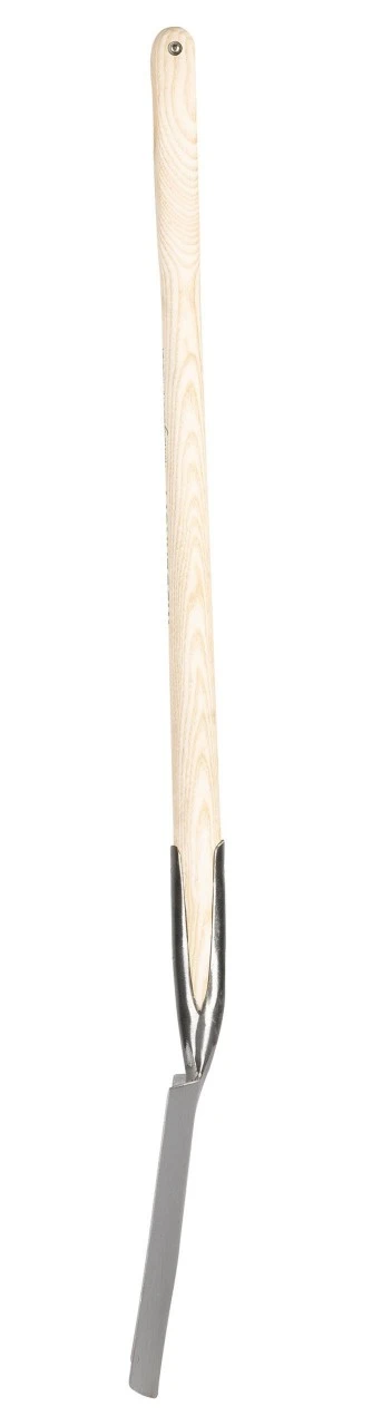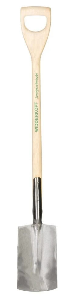 En populær spade egnet til alle slags havearbejde. Takket være den halvrunde form er den særlig egnet til omplantning af buske, stauder og andre flerårige planter. Blad i hærdet specialstål, med lange forstærkede fjedre (200 mm). Skaft med komfortabelt D-greb. Blad 155 x 260 mm, vinklet 70 mm. Bladtykkelse ca. 2,5 mm. Længde 1140 mm, vægt 2135 g.