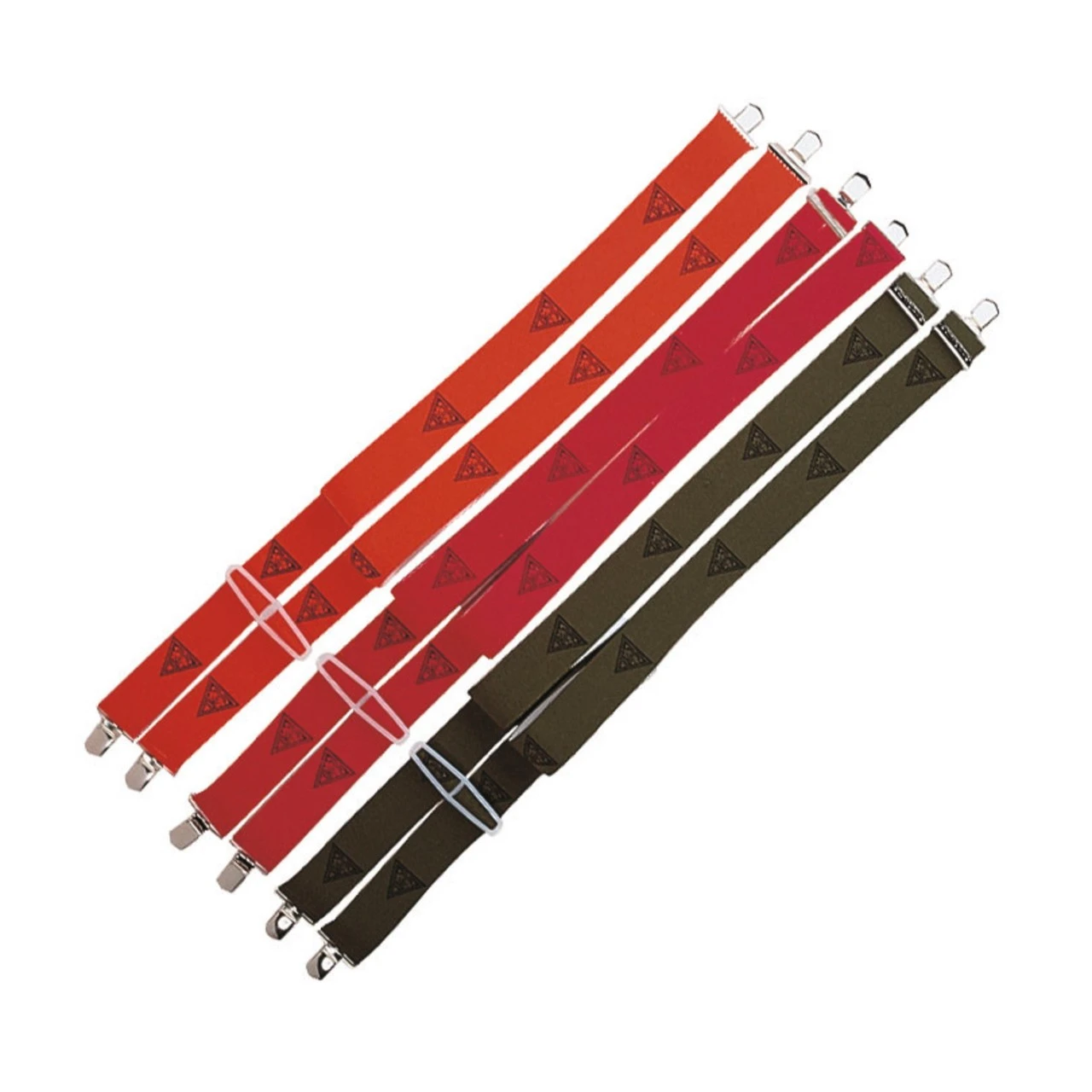 120 cm. lange, 4,5 cm. brede. En meget elastisk sele med metalklips.
