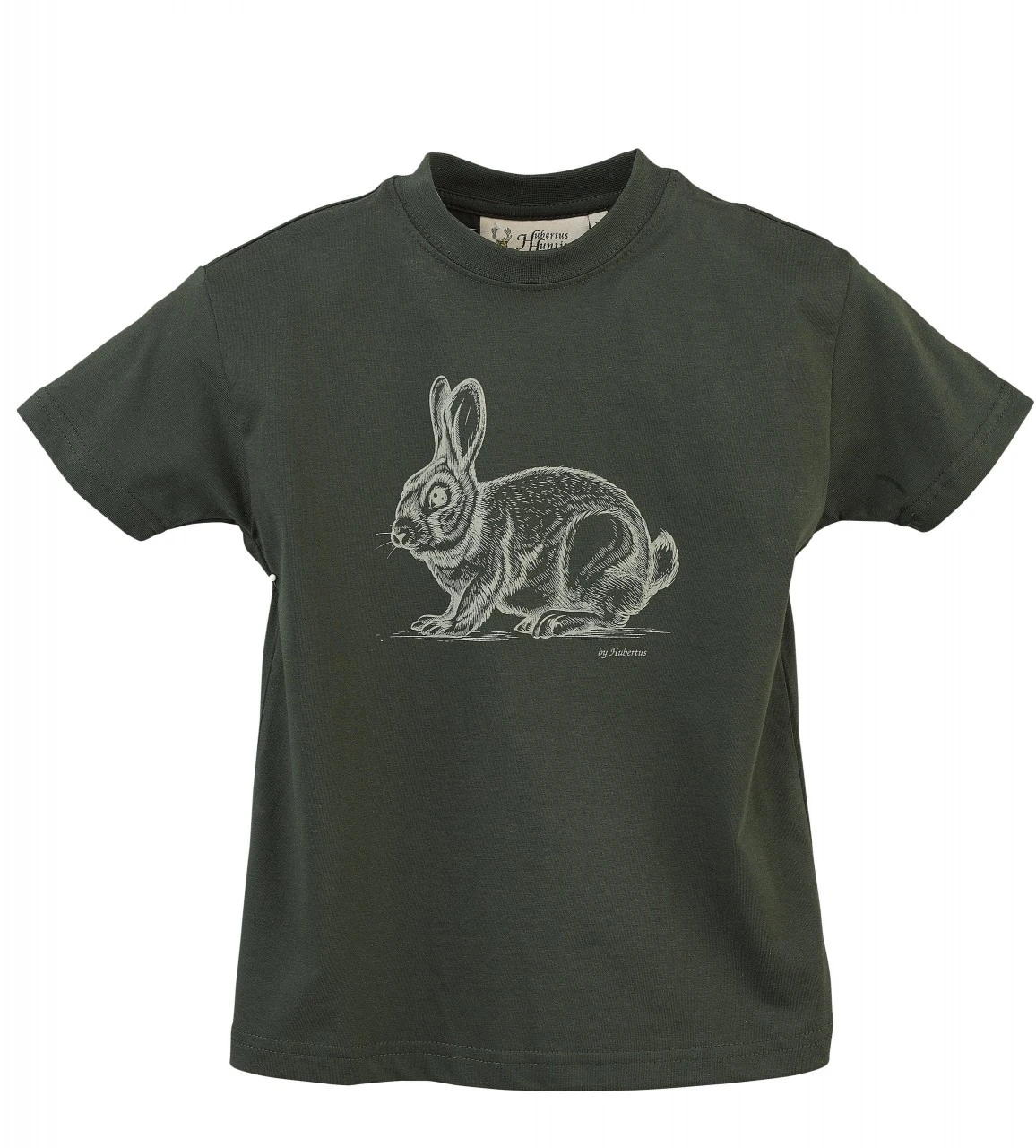 Hubertus t-shirt med kanin på til børn er lavet af ren bomuld og utroligt behagelig at have på. Der er et kaninformet tryk på brystet.