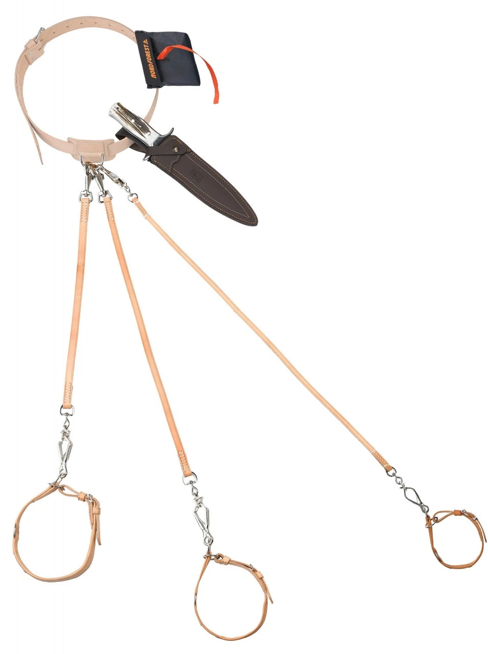 Løsningen for alle hundeførere, der vil have arme og hænder fri. Hent dit våben hurtigt uden at blive fanget i den klassiske fangsnor. Især rygsække og Geværremme går ikke godt sammen med fangsnore. Det robuste værktøjsbælte fra skovdriften er forsynet med en speciel løkke, hvor du kan hænge et vilkårligt antal ender af hundesnoren, 76-863 / K – L. Så det betyder ikke noget, om du går på jagt med en, to eller fem hunde på samme tid. Hvis du har hunde af forskellige racer eller mankehøjder, er det heller ikke et problem. Naturligvis kan du kombinere snorenes ender med hinanden afhængigt af den ønskede længde. Du kan også sætte knive, patronetuier, førstehjælpssæt til jagthunde, markeringstape eller en hønsegalge fast i hundeførerbæltet. Alt er hurtigt tilgængeligt og perfekt skræddersyet til dine jagtbehov.