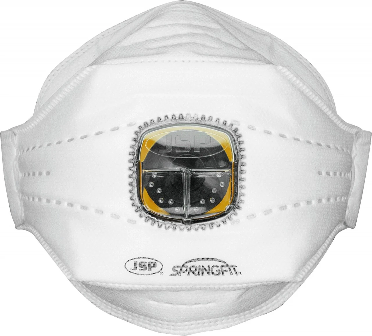 JSP Springfit FFP2 med Typhoonventil er et behageligt engangs åndedrætsværn, jfr. EN 149. Det beskytter mod fibre, fint støv, dampe og tåge. Den specielle Typhoon-ventil reducerer vejrtrækningsmodstand og varmeopbygning, hvilket er et ægte plus ved højere udetemperaturer og fysisk anstrengende arbejde. Brug af den specielle endoskeletstruktur på indersiden sørger for en sikker pasform og ansigtsforsegling. Takket være det elastiske materiale og sløjferne, kan masken let tilpasses de fleste hovedstørrelser og -former. Det sammenfoldelige design gør den praktisk og kompakt. Den er individuelt pakket, for at sikre et højt niveau af hygiejne.