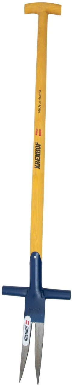 Fjerner effektivt rødder og andet pælerodsukrudt i græsplæner, beder eller på marker og enge. Gaffelængde 26 cm, nem at træde i jorden med fodstøtten. Længde 120 cm, vægt 1870 g.