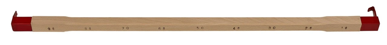 Aflægningsmålestok af slebet bøgetræ. Længde 100 cm.Målestokken, der står på højant, er inddelt og markeret i decimeter. Med to stålanslag, en side med vinkelformet ridsekniv. Vægt 750 g.