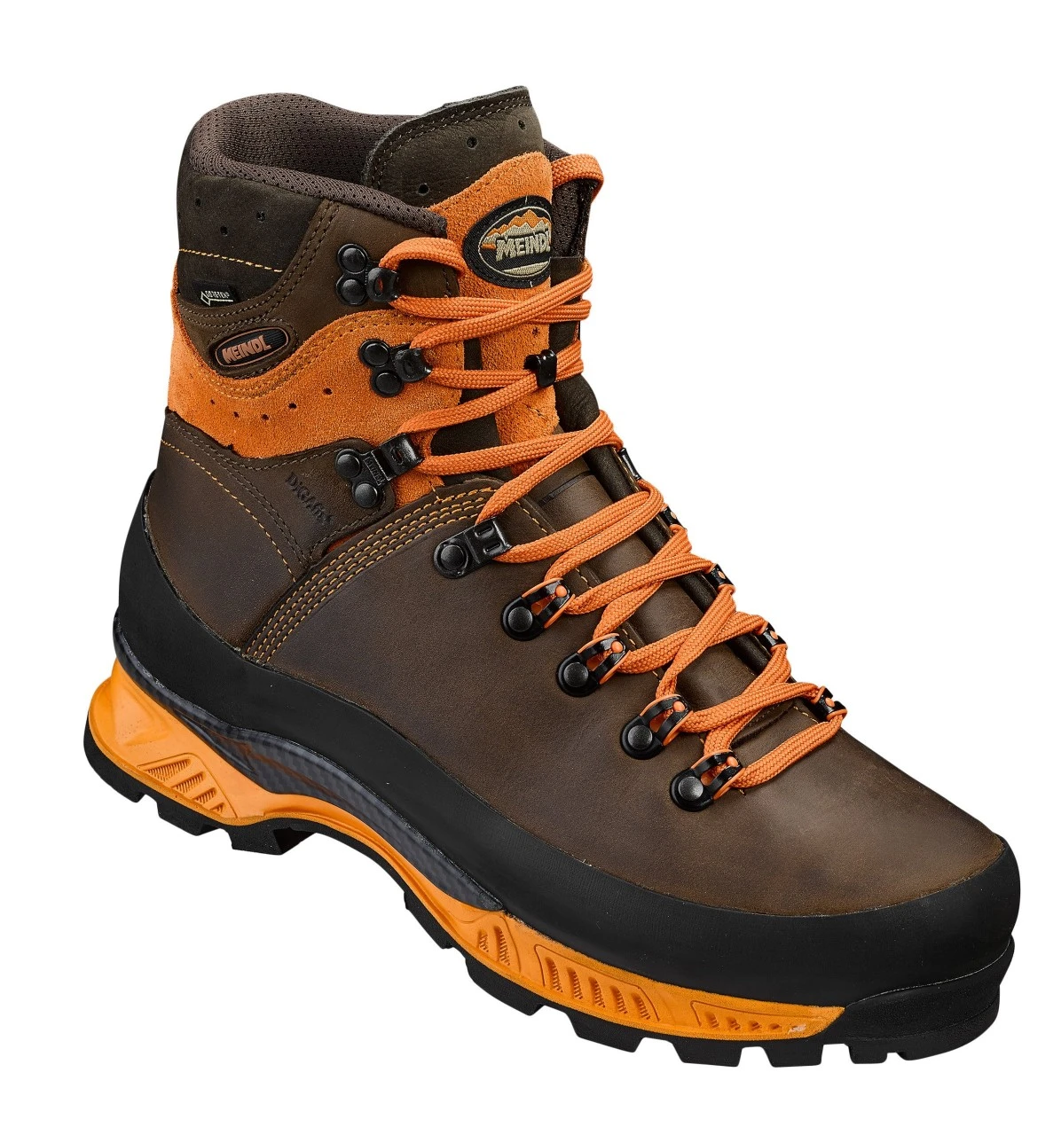 Jagtskoen er lavet af Sil-nubuck med Gore-Tex-for, MFSystem og DiGAfix-system. Den todelte sål med topmoderne profilteknologi er specielt designet til ekstreme terrænforhold. Den har blød, orange gummi med metalpartikler indvendigt, med ekstra godt greb, som står sikkert fast på glatte gulve og træoverflader, samt en stærk profil, der forhindrer, at den glider sidelæns, når man går. På ydersiden har sålen på Meindl Island MFS Active Rock en godt gribende, slidbestandig gummi med bevægelige lameller. Den markante sål giver god støtte og forhindrer, at man glider på glatte eller overisede hochsitz-stiger.