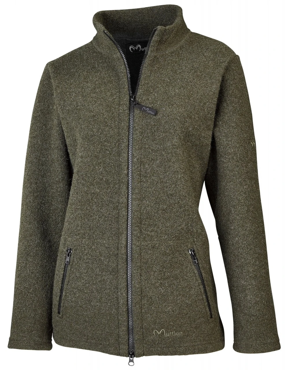 Naturlig karakter. Mufflons valkede damejakke, Lou, varmer utroligt godt, takket være den gennemprøvede Mufflon-kvalitet W100. Det smalle, let skræddersyede snit suppleres med en praktisk, kontrasterende tovejs lynlås og to sidelommer – også med lynlås. En høj stående krave giver ekstra god beskyttelse, mens den justerbare linning optimerer pasformen.