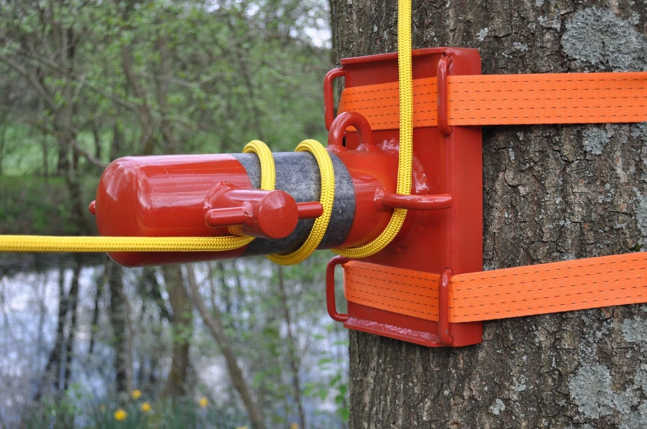 Til dynamisk nedfiring også af tung last. Pullerten bliver spændt fast på træet med 2 seler nr. 44-013/4,0 (lev. uden seler). Vægt 7,8 kg.