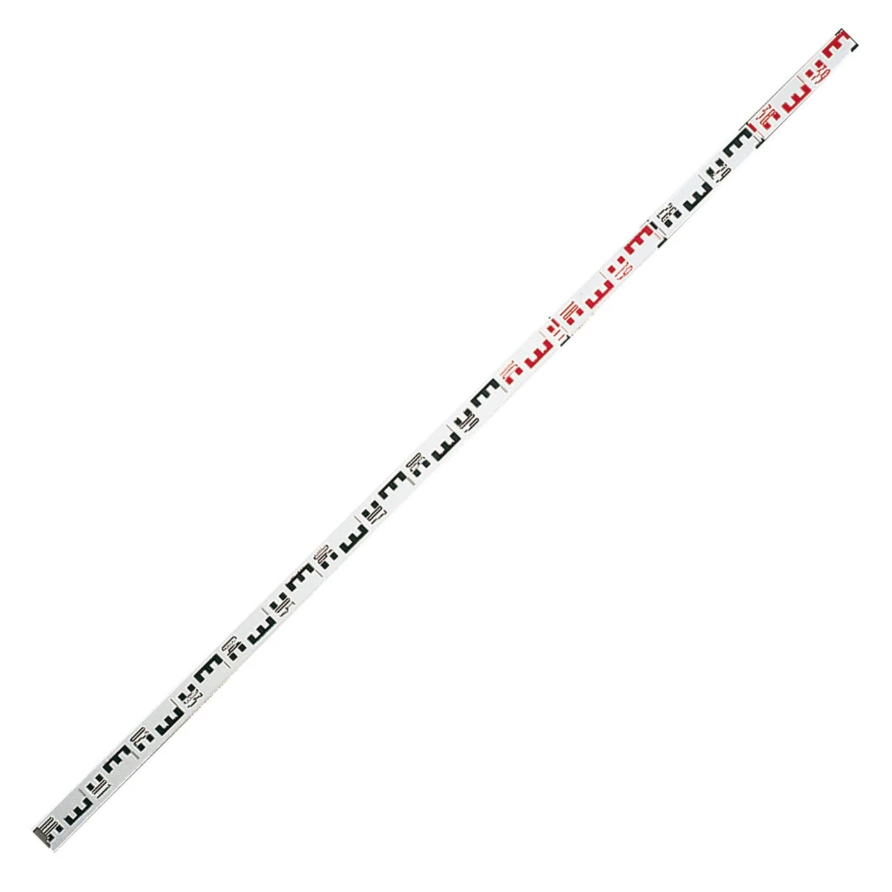 Lavet af rektangulære rør i anodiseret aluminium, forlænges med teleskopfunktion til fire m. Forside med cm-graduering, bagside med mm-graduering. Fire dele på 110 cm, vægt 1600 g.