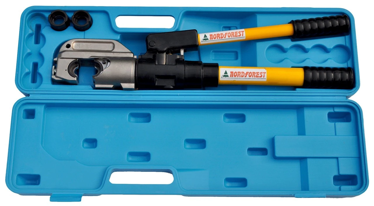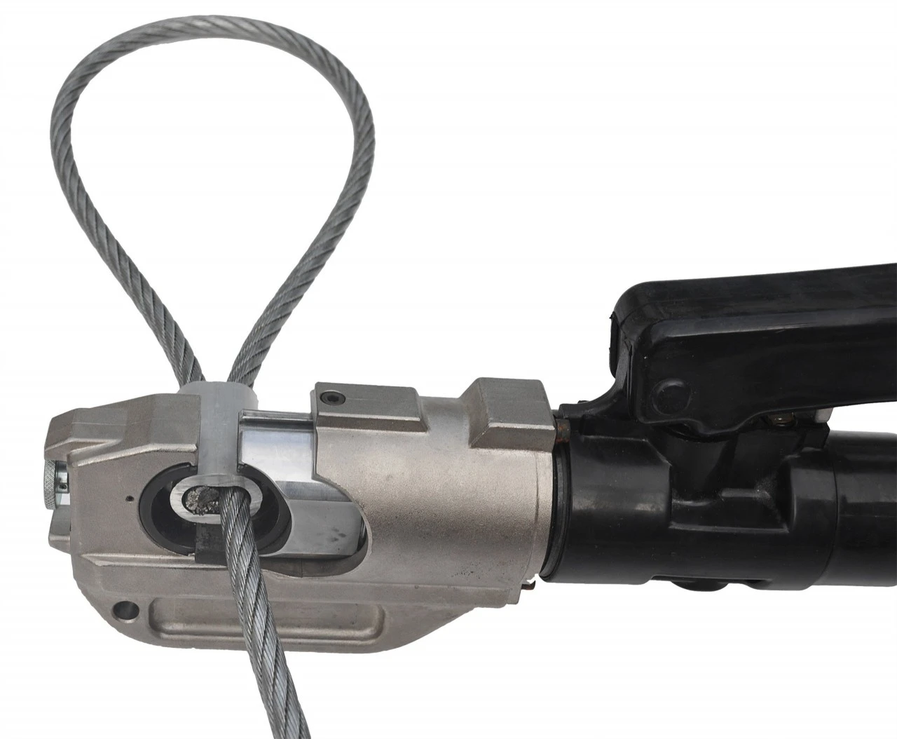 Til presning af wirer. Kan fås til wirer fra 8-14 mm diameter. Når klemmen er lagt på, lægges wiren ind i den åbne wirepresse. Enden af wiren skal stikke 5-7 mm ud af klemmen i samme retning som resten af wiren, sådan at der efter presningen stadig stikker ca. 2 mm ud. Der presses i 4 arbejdsgange fra startende udefra på hovedwiren og ind mod løkken. Der skal være en afstand mellem indpresninger på ca. 3 mm. Når armene trykkes sammen opstår der et tryk på 13 tons. Armene skal holdes sammentrykt, indtil pressen frigiver trykket. Efterfølgende drejes grebet i åbnet tilstand og trykkes ned endnu engang. Derved åbnes en ventil, og pressebakkerne glider tilbage i udgangsstillingen. Værktøjet leveres med 7 sæt bakker (fra 8-14 mm). Vægt 9,66 kg