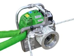 Alle spillets funktioner kan styres fint med en sikkerhedsafstand på 5 meter med rebets ende. Den væsentligste sikkerhedsstyring er dødmandsafbrydelsen, slippes rebet trækker spilmotoren ikke mere og lasten holdes i ro. Motoren tankes med samme alkylatbenzin som din motorsav og kører uanset stilling. 2-gears planetdrev med kuglelejrede solhjul taler for højeste kvalitet og lang levetid.