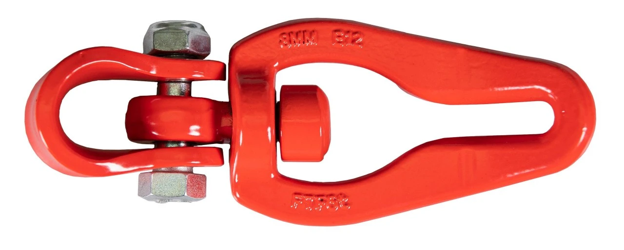 Den drejelige Nordforest-rebglidebøjle FTF 6 er konstrueret til firkant- og rundstålskæder op til 8 mm. Passende til spilwirer op til en wirediameter på 14 mm. Vægt 690 g.