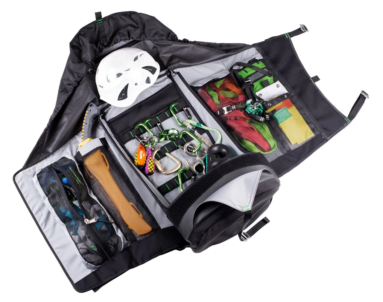 Notch ProAccess Bag er en rebtaske med mange rum og løkker til dit klatreudstyr. Den har den fordel, at udstyret altid er let tilgængeligt ovenfra og forfra. De indvendige lommer er lavet af robust netmateriale, nogle er også forsynet med lynlåse, så det opbevarede udstyr ligger på en synlig og luftig måde. Notch ProAccess-tasken tilbyder masser af opbevaringsplads på hele 60 liter. Aftagelige skulderstropper, skridsikkert underlag. Mål ca. 69 x 38 cm. Vægt 2,1 kg. Leveres uden indhold.