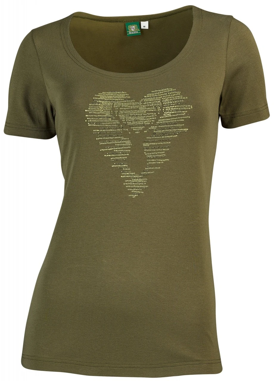 OS-Trachtens dame-t-shirt med et rhinstensmotiv imponerer med dens fashionable detaljer. Den bevægelsesvenlige materialekombination sikrer stor komfort.