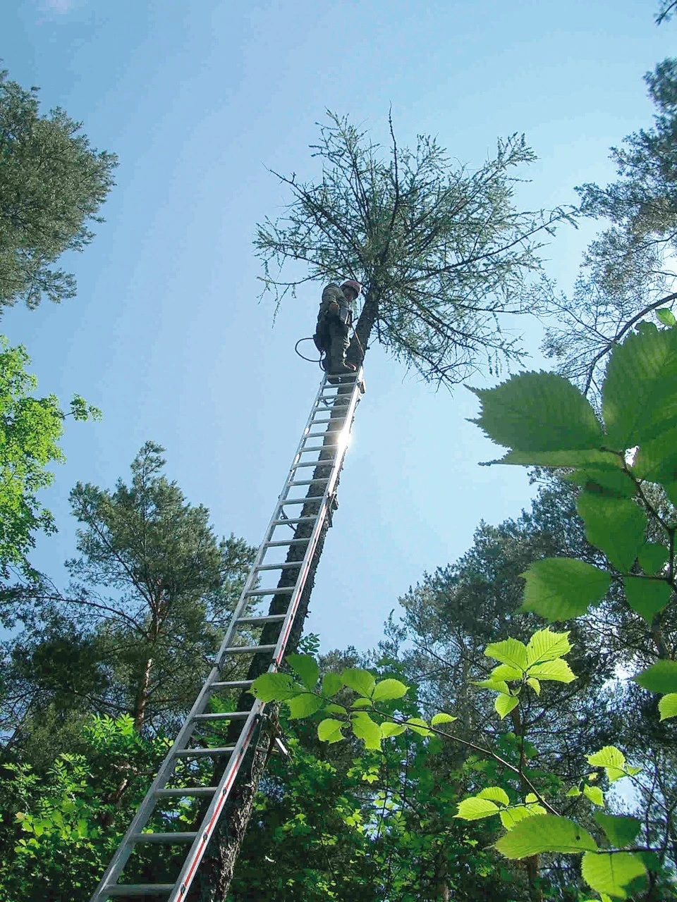 Til store højder – op til 20 m. Som standard anvendes et basissegment på 420 cm, nr. 71-150-01, og 3 påsætningssegmenter på 340 cm, nr. 71-151-01. Stigen kan dog også udvides til mere end 20 m med yderligere plug-in-segmenter. Hver stigesektion har en påskruet understøtning, nr. 71-178-01, som indsættes og fastgøres i det øverste trin på stigesektionen. Stigeholderne kan hurtigt og nemt fjernes og gøre transport og opbevaring pladsbesparende. Hvert stigesegment kan også bruges som en normal enkeltstige. Basissegment til Heidelberg-stige
