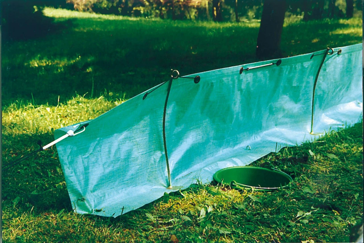 Dette padde-beskyttelseshegn giver vigtige fordele, hvis det bruges ved veje som årstidsafledningssystem med fangstspande. Det består af en grøn, fast polyetylen-presenning. Pga. det glatte stof og de indad bøjede holdestave forhindres især også salamandere og andre padder effektivt i at kravle over hegnet. En side med påsyede øskenbånd til at sætte spændesnoren gennem med den medfølgende gennemføringsnål. Opstillet højde ca. 500 mm. Enkelt at montere takket være de gennemtænkte opbygningselementer. Til spændesnoren medfølger spændeelementer til efterspænding. Der medfølger en udførlig montagevejledning til de enkelte hegn. Padde-beskyttelseshegnets materiale er særligt rådbestandigt, UV-bestandigt, nemt at vedligeholde og opbevare, kan også genbruges i lang tid.