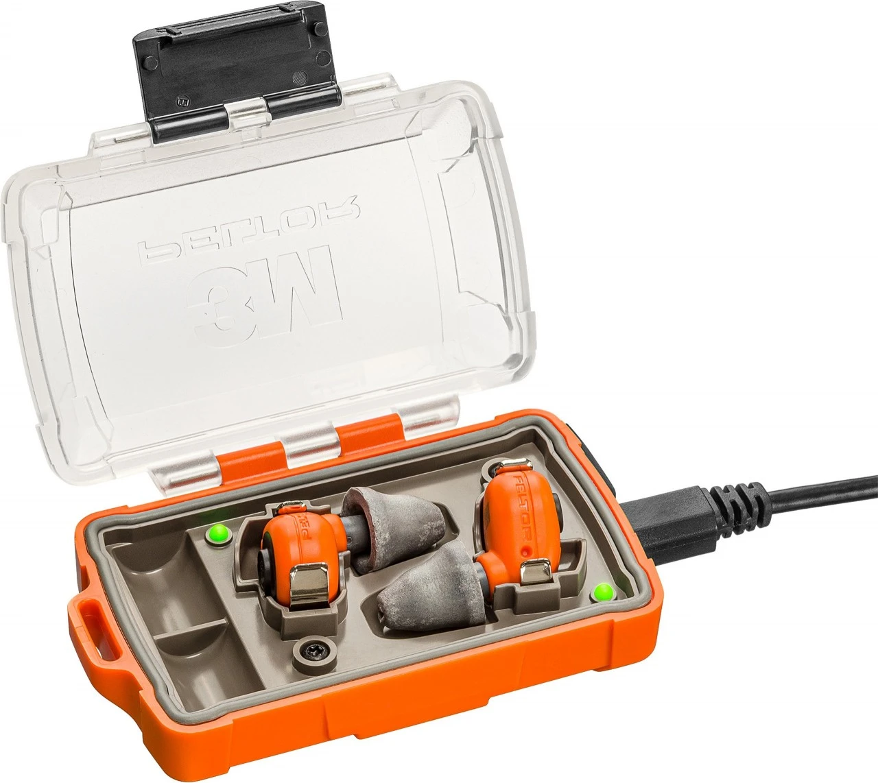 Takket være den kompakte etui, er EEP-100 OR ørepropperne sikre og lette at have med i din jakke eller bukselomme. Stikkene lader også ørepropperne direkte i etuiet, via et USB-stik. Det nødvendige USB-kabel følger med. Batteriets levetid er op til 16 timer, opladningstiden er ca. 3 timer. Leveringen inkluderer en sikkerhedssnor (nr. 94-279-01) og et glas (nr. 94-279-02).