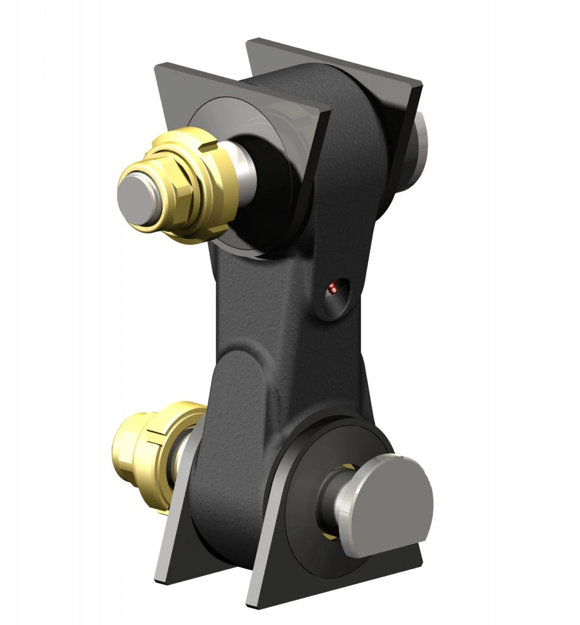 Drejeled med dobbeltbremse og bolte foroven og forneden
