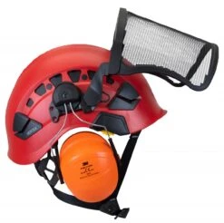 Petzl hjelmsæt til arborister består af Petzl-klatrehjelmen Vertex Vent, Peltor-høreværnet H31 (SNR-værdi 28 dB) og Peltor-visiret V4JKSV (sortlakeret ætsemetal, uden solskærm). Vægt 990 g.