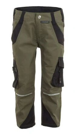 De robuste Planam-cargobukser Norit til børn er en velgennemtænkt ledsager til alle eventyr. I linningen og skridtet giver indsatser af 4-vejs stretch en god pasform og mere bevægelsesfrihed. Bukserne består af let blandingsstof uden skadelige stoffer i henhold til Oeko-Tex-standard 100. De er desuden udstyret med et stort antal lommer. To rummelige stiklommer og to lårlommer giver tilstrækkelig plads til alle mulige skatte, der skal med ud eller hjem. En påsat lårlomme i venstre side med blyantholder og integreret lomme med lynlås og en lille tommestoklomme med blyantholdere er yderligere detaljer.