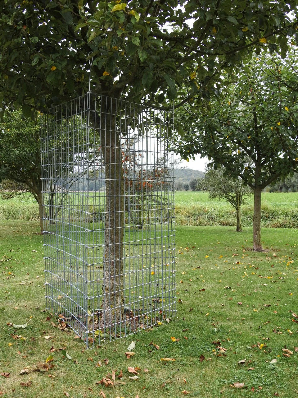 PlantaGard trådelement til individuel træbeskyttelse 150 x 100 cm er velegnet som individuel, stammebeskyttelse til længere brug ved større planter. Det robuste net består af 4,5 mm tyk, galvaniseret Galfan-tråd (ZnAl, min. 350g / m²), som er ekstremt velegnet som beskyttelse mod fejning og vildtbid af buske og frugttræer, på dyrenes stier. Gittermåtter fylder ikke ret meget under opbevaringen og kan genbruges i lang tid. Det kræver kun 3 maskemåtter pr. plante for at sikre stabil, individuel beskyttelse. Man kan også sætte flere elementer sammen ifm. flerstammede træer eller buske. Græsset indvendigt er nemt at fjerne, når man løfter de installerede beskyttelseselementer.