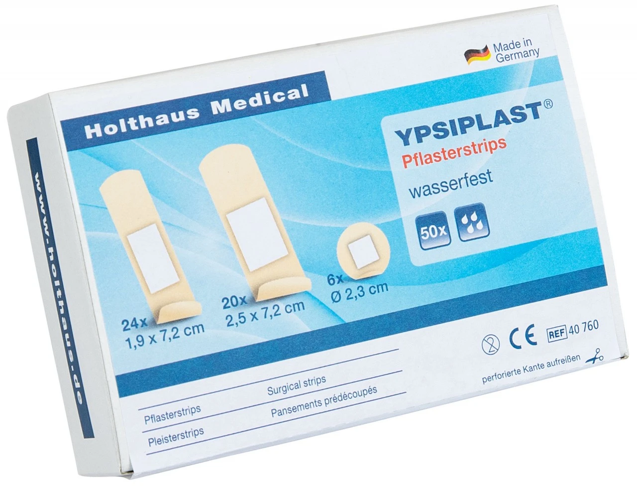 Sortimentet består af 50 dele elastisk, vandfast Polyethylen plaster :