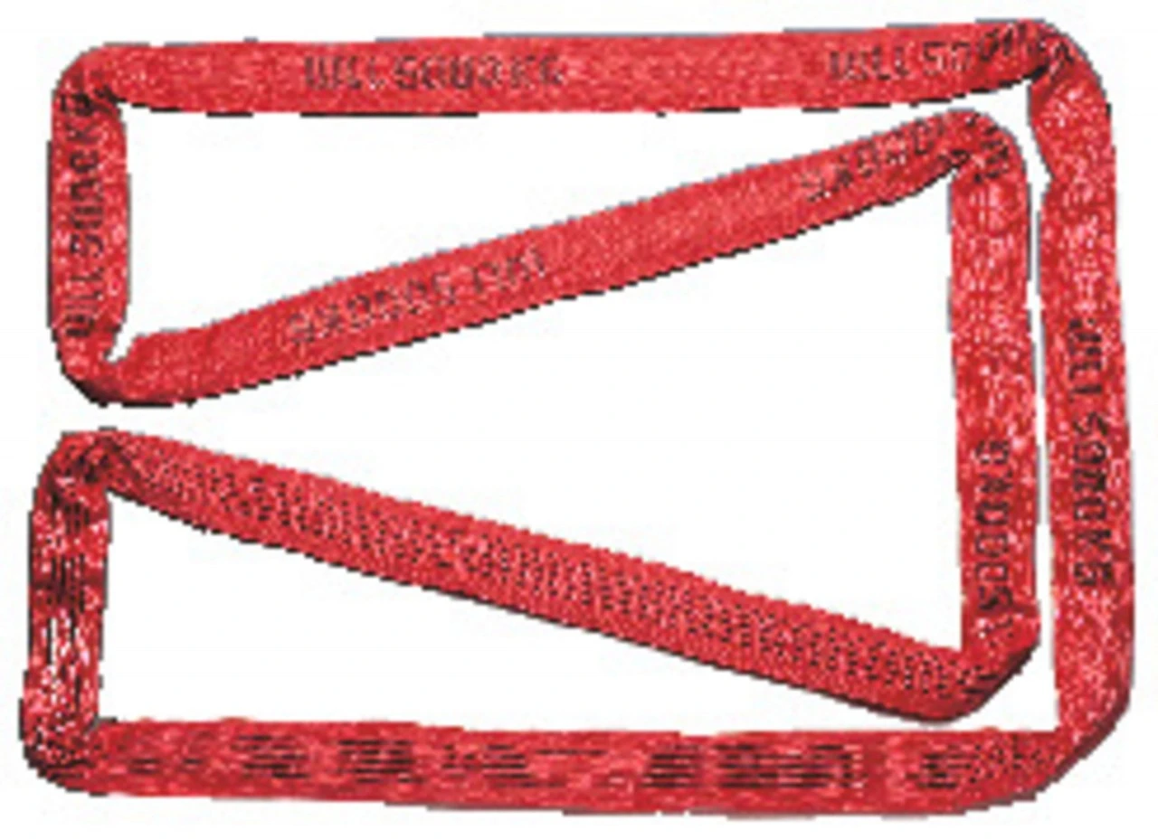 Polyester rundsling , gul, sikkerheds faktor 7, belastning direkte 3 T , belastning bøjet 6 T, belastning omslået 2,4 T, Brudstyrke 21 T.