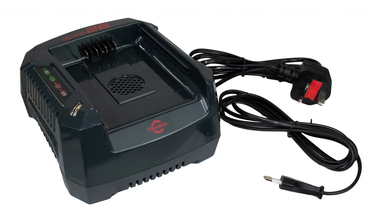 230 V-oplader beregnet til 82-volts apparater fra Portable Winch, PowerWorks og Greenworks. Ladestrøm 4 A. Vægt 1,5 kg