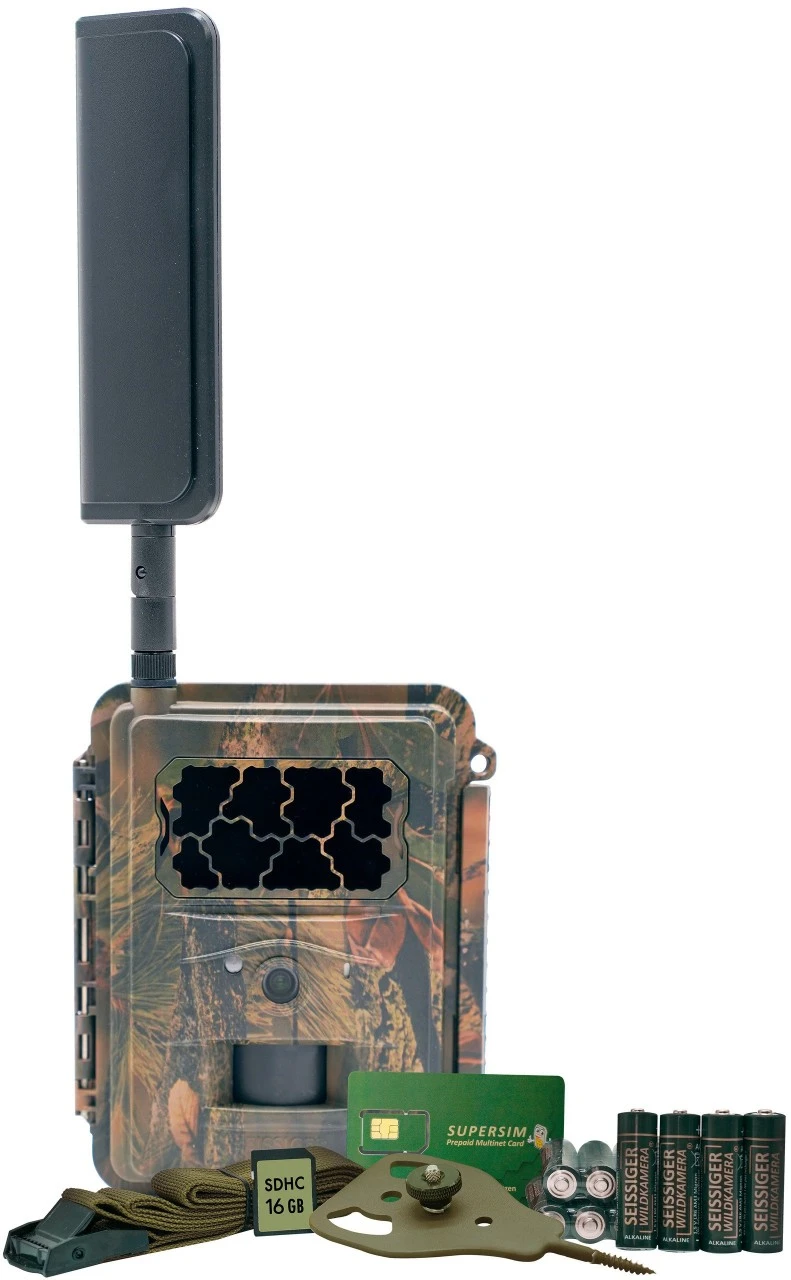 Seissigers vildtkamera Special-Cam i Supersim-udgaven er det optimale valg, når du ønsker et vildtkamera med stabil og hurtig billedoverførselsfunktion. Vildtkameraet er udstyret med et multi-SIM-kort, der automatisk ringer op via det stærkeste mobilnetværk. Det sikrer pålidelig overførsel af billederne til din smartphone. De optiske data fra Seissigers Special-Cam Supersim er også imponerende: Fotos på op til 12 megapixels og videoer i HD-opløsning samt en usynlig sort blitz til natbilleder. Det inkluderede hukommelseskort med kapacitet på 16 GB har masser af plads til adskillige indtryk fra jagtområdet.