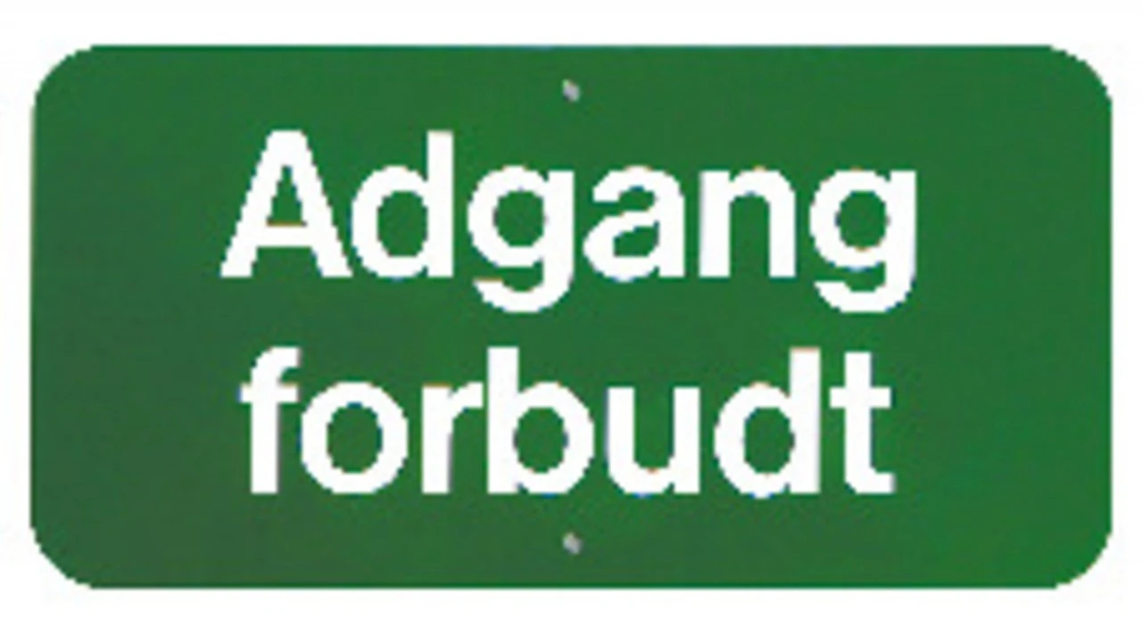 Grønt skilt med hvid tekst på en 2 mm. tyk aluminiumsplade. Mål 30 x 15 cm.